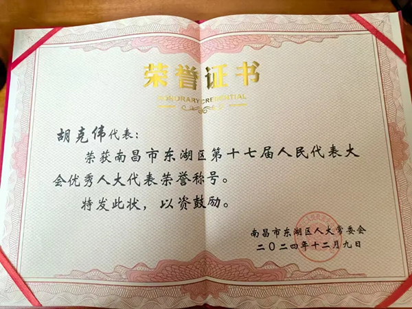 知責(zé)于心、擔(dān)責(zé)于身、履責(zé)于行。 胡克偉說:“人民選我當(dāng)代表,我當(dāng)代表為人民,作為市、區(qū)兩級人大代表,今后,在人大履職工作中,會繼續(xù)以高度的責(zé)任感、使命感,履行好人民賦予的職責(zé),為人民群眾辦實事、解難事,把群眾的需求和建議及時準(zhǔn)確反饋給政府,為政府決策提供有力參考,發(fā)揮自身專業(yè)和優(yōu)勢,為東湖發(fā)展添磚加瓦,與政府和全區(qū)人民齊心協(xié)力,攜手共創(chuàng)東湖區(qū)更加美好的明天!